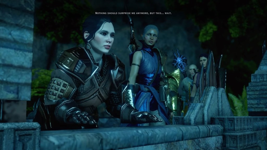 The Crossroads in Trespasser are a unique setting, and they change a little depending on whether your Inquisitor is an Elf or not. Which I totally adore! They are a place where anything seems possible. And they lead to eluvians, which in turn lead to towers and fortresses set presumably in Tevinter, through that does not become entirely clear. The Inquisitor once comments that they don’t know “If we ar even in Orlais anymore”.