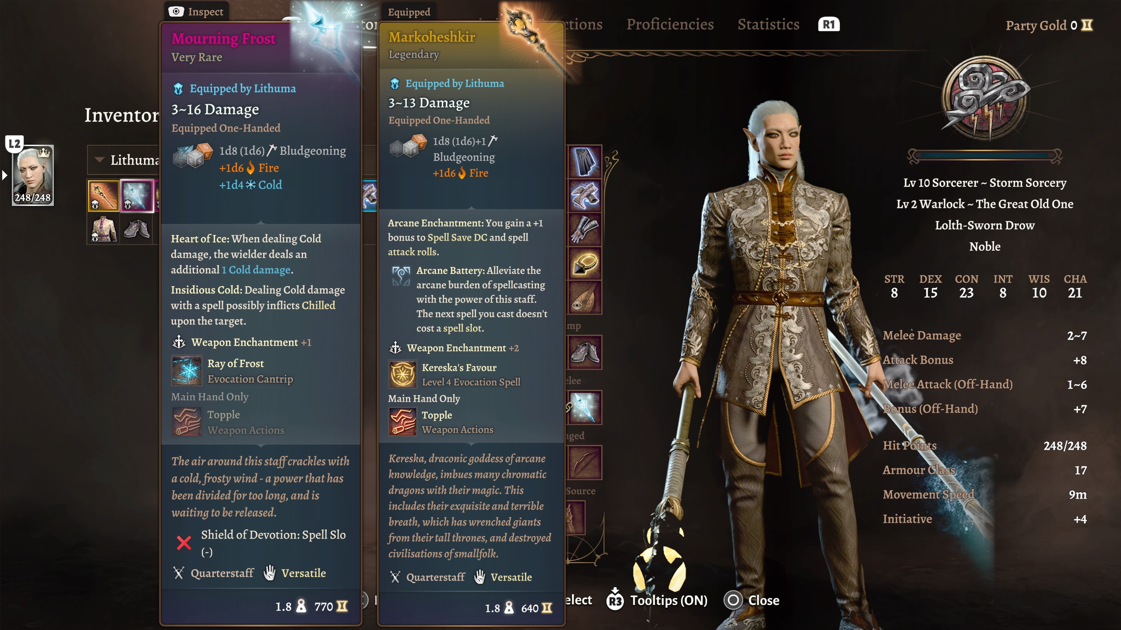 This staff has one of the most damage as staffs go and what I really like about it is that you have to find its pieces and reassemble it yourself. All the pieces can be found on drow wizards in the Underdark. Since I usally make my sorcerers and wizards dual-wielders, it is a staff that compliments other, legendary ones found later in the game quite well. - Blackguard Armour-Set (Warrior class)
